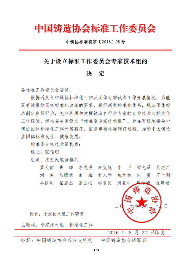 關(guān)于設立標準工作委員會(huì )專(zhuān)家技術(shù)組的決定